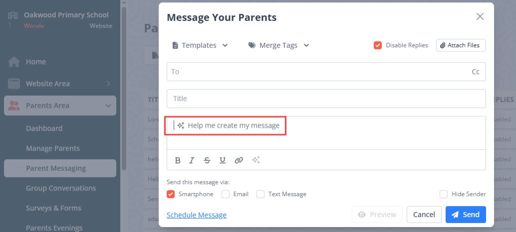 When creating a message for parents and carers: