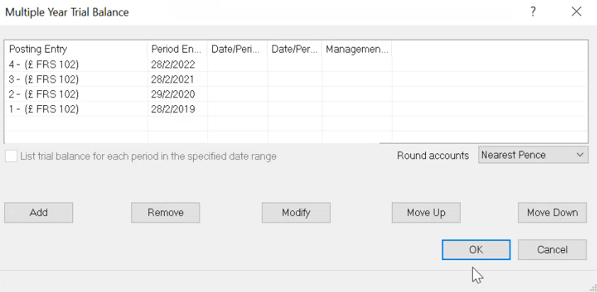 In Accounts Production desktop, go to Reports > Multiple Year Trial Balance.