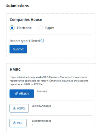 - Download a copy in either iXBRL or PDF format and attach to the tax return.