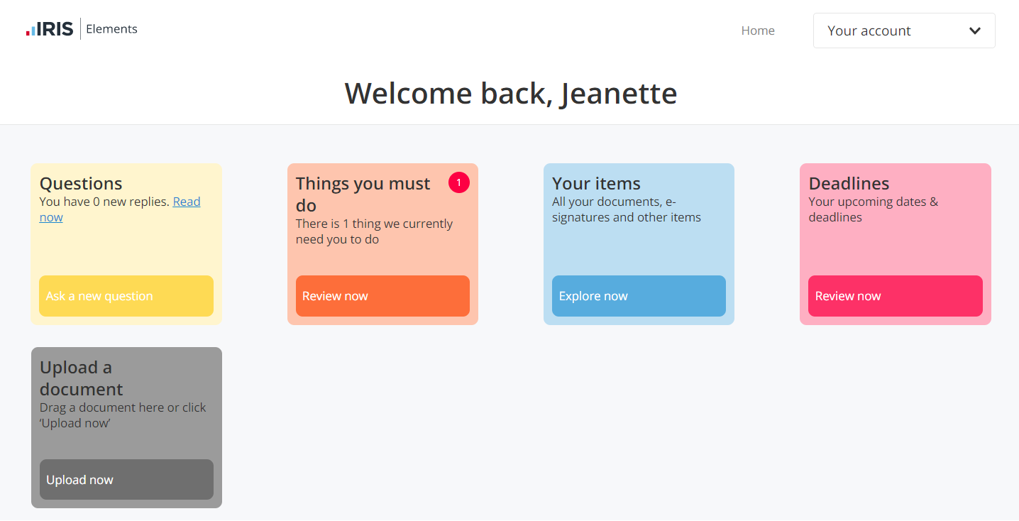 - Your items — A single repository for all documents, forms, and signature requests for your client