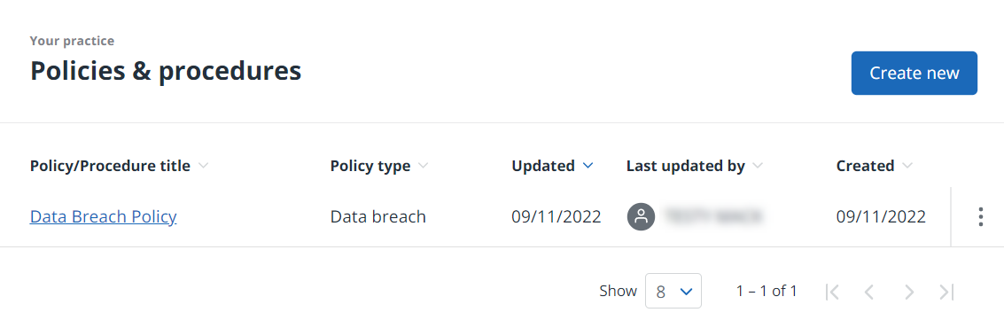 - From the Compliance list, select Policies & procedures. Any existing documents are shown.