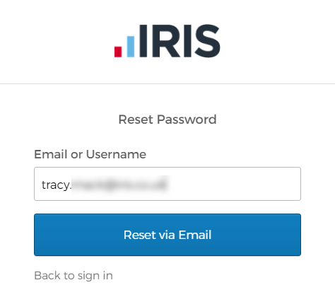 - Enter your Email or username, then select Reset via Email. We'll send you an email with a link to reset your password.