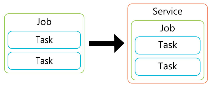 How tasks, jobs, and services fit together: