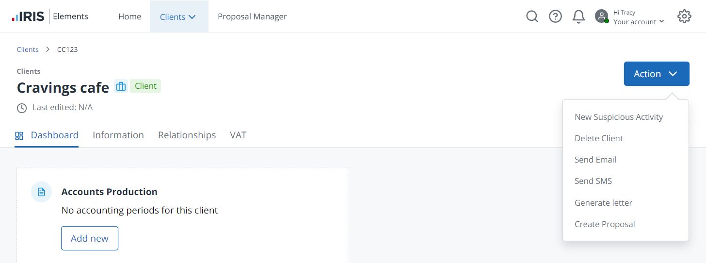 You can now create a proposal directly from the Client page via the Action list.