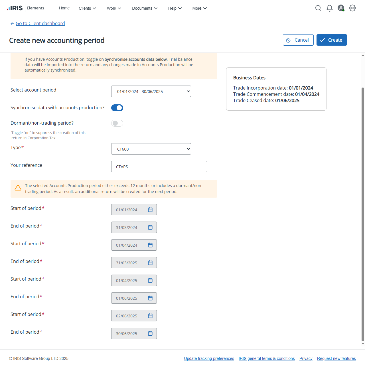 Product subscription required: IRIS Elements Accounts Production (any level) and IRIS Elements Tax (any level)