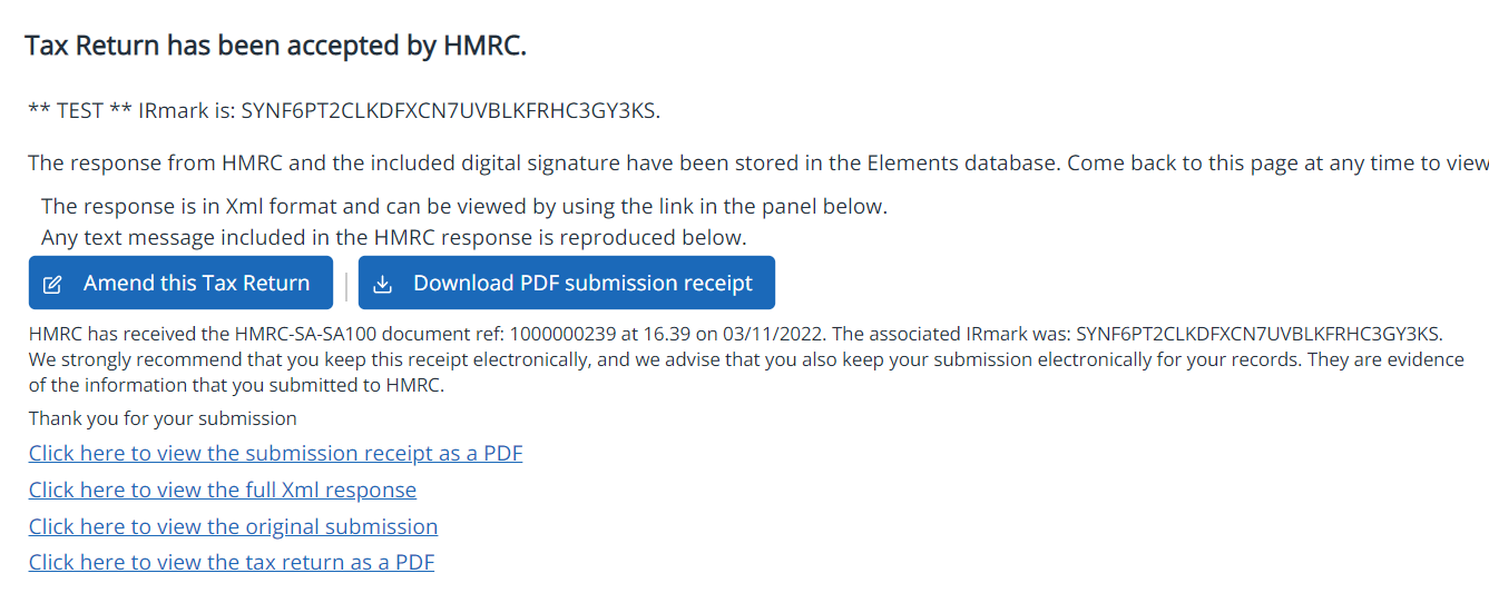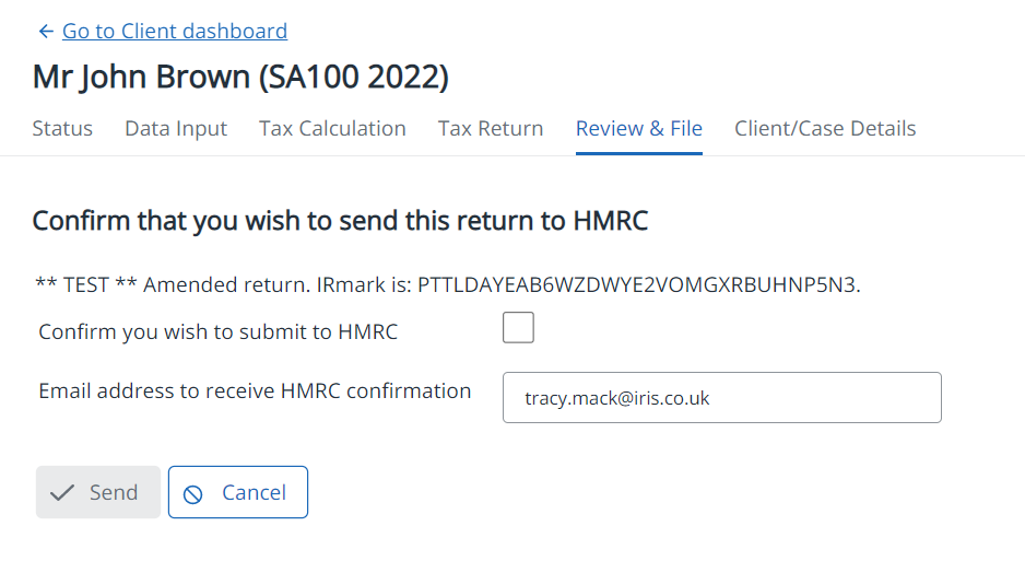 3. Select Submit this Tax Return to HMRC, then Confirm you wish to submit to HMRC.