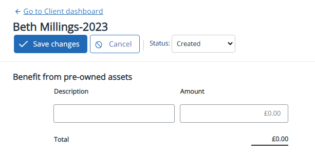This section is used to record any benefits from pre-owned assets.