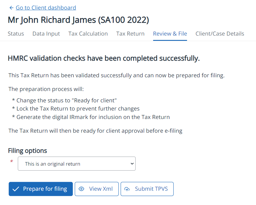 From Filing options, choose whether this is an original or amended return, then select Prepare for filing.