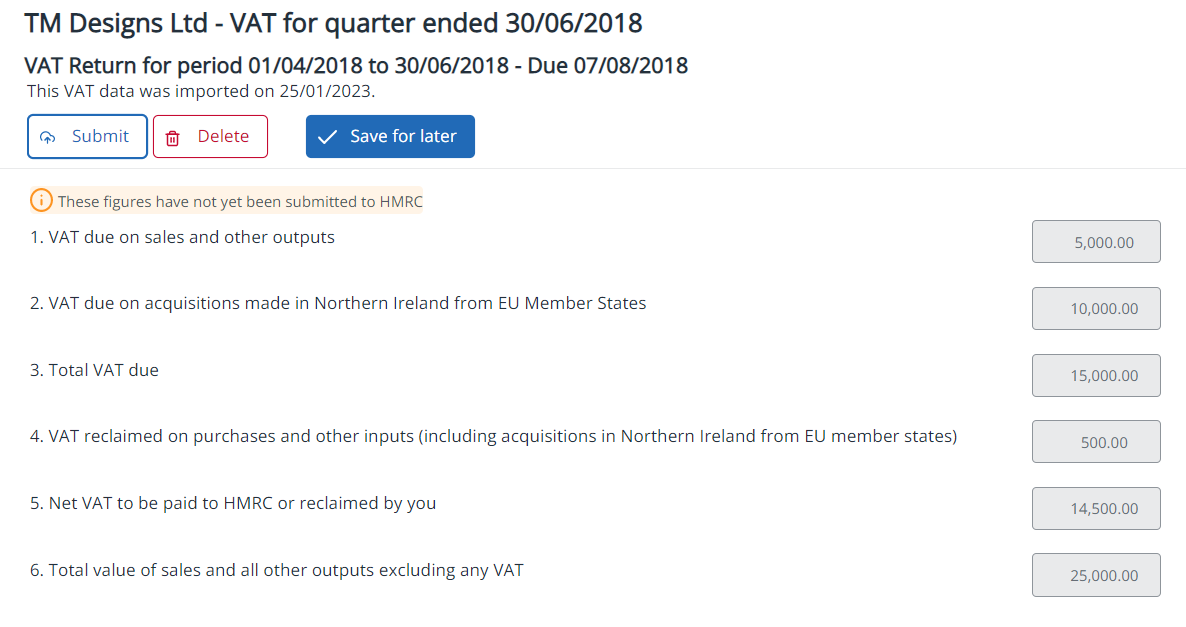 - Check the figures, then select Submit. The return is submitted to HMRC.