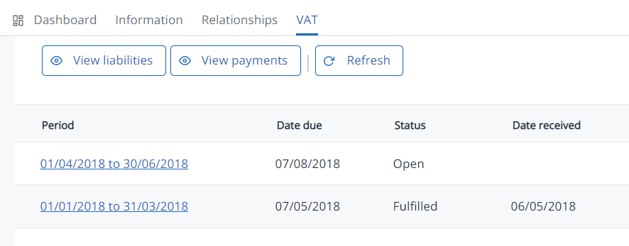 - Select View liabilities to download any current liabilities from HMRC (you must have previously connected to HMRC).