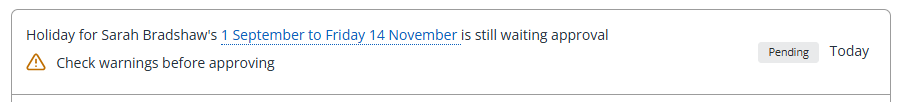 Home page - In the inbox list, if there's a warning associated with a request, this will now be displayed underneath the link to highlight to a user that there's more information available.