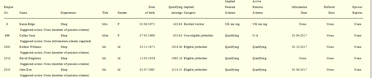 This gives the user an overview of all employees on the payroll and their current status under Therefore, it will not just show actions required in the current month but also actions that have been taken historically as well as actions that may be required in the future