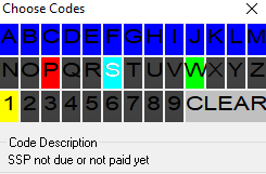 You can see the code currently in use to the right of this button. From the box of code letters, choose S by clicking on it.