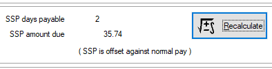 Click Recalculate. IRIS Payrite will now calculate SSP, you can seethe result to the left of the recalculate button.